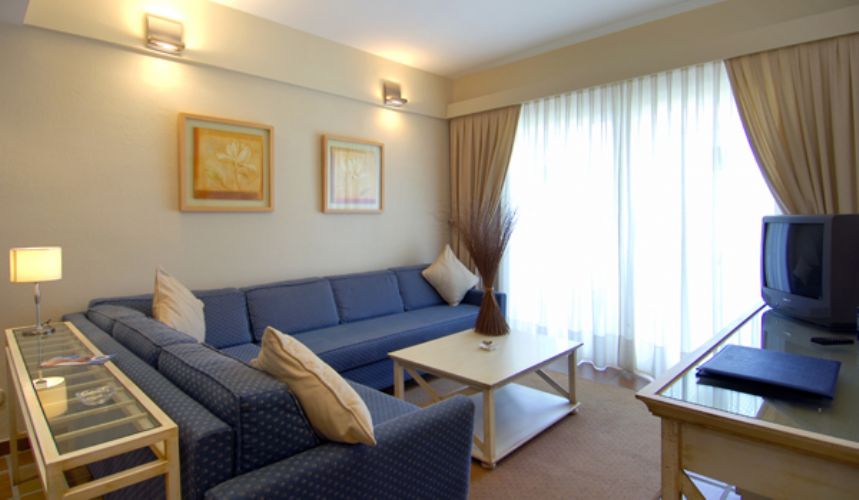 Junior Suite (195/4) Confortablemente equipadas y de gran amplitud, todas ellas con habitación y salón independientes que las hacen idóneas para ser ocupadas por familias ó por adultos con una gran comodidad y amplitud. Todas equipadas con los últimos adelantos, caja fuerte, secador de pelo, minibar, teléfono directo, televisión vía satélite, set de amenities de Bienvenida y un esmerado servicio de limpieza para que nuestros clientes puedan sentirse mejor que en su propio hogar.