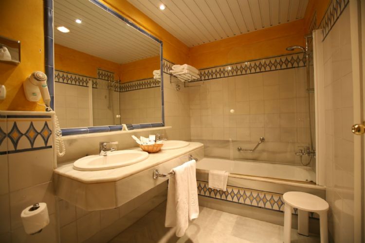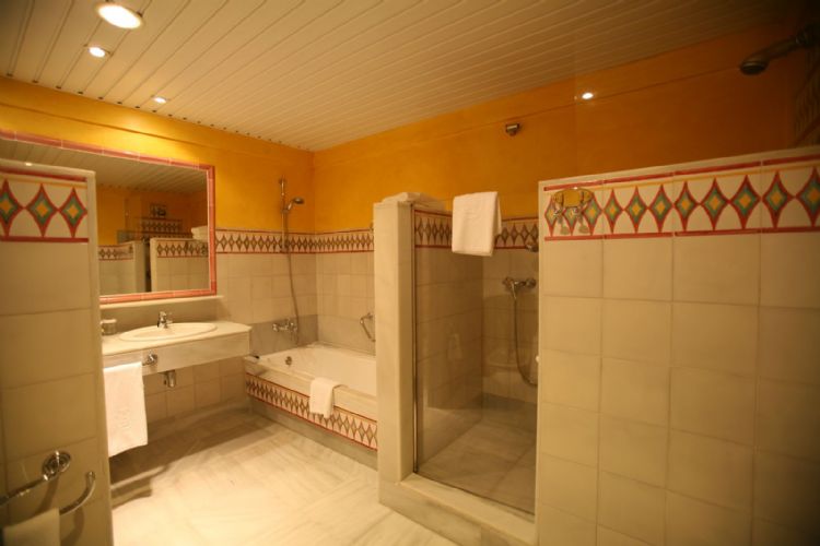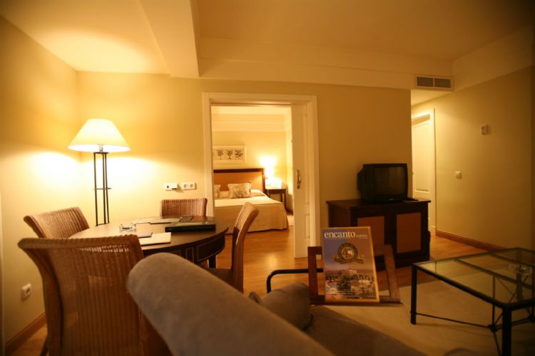 ASIMISMO SUS 7 JUNIOR SUITES DISPONEN DE DUCHA DE HIDROMASAJE, JACUZZI, AMPLIA TERRAZA PARA DISFRUTAR DE LOS MAS DE 18.000 m2 DE JARDINES, TELEVISION TFT DE 42", WI-FI Y LINEAS ADSL.